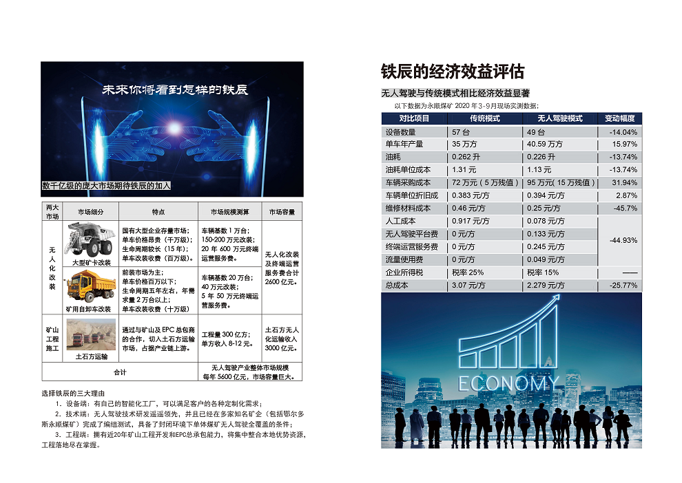 截至目前,鐵辰智能裝備項目建設(shè)進程已經(jīng)過半,技術(shù)中心、無人駕駛組裝車間即將投入運營,現(xiàn)代化的成套生產(chǎn)線有望在春節(jié)前完成入廠安裝和調(diào)試,嶄新的無人駕駛樣車已經(jīng)在鄂爾多斯永順煤礦實現(xiàn)穩(wěn)定運行,各項技術(shù)參數(shù)達到國內(nèi)先進水平,為明年實現(xiàn)全面量產(chǎn)和上百臺設(shè)備編組運行奠定了堅實基礎(chǔ)。